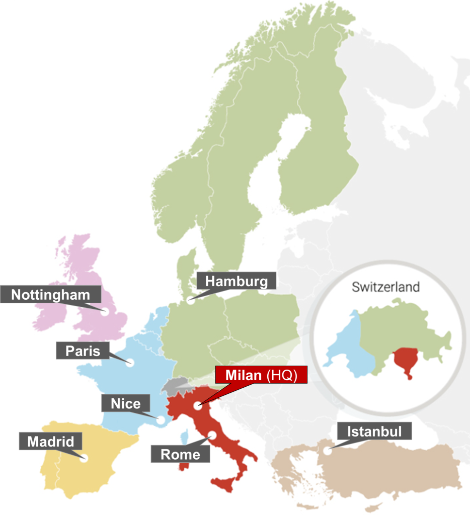 The Headquarter is based in Milan, Italy, from where all business is managed and R&D is based.